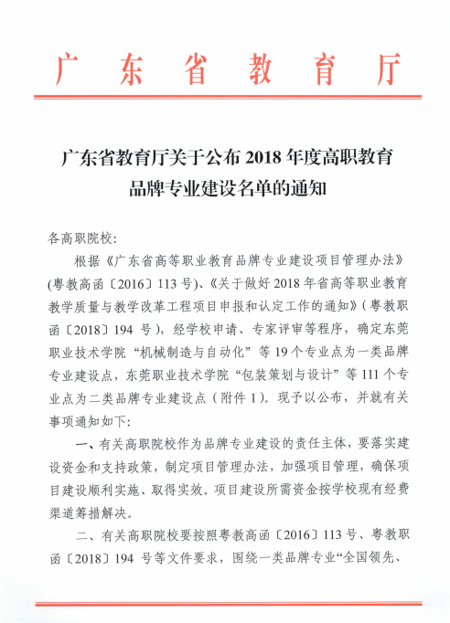 根据《广东省高等职业教育品牌专业建设项目管理办法》 (粤教高函〔2016〕113号)、《关于做好2018年省高等职业教育教学质量与教学改革工程项目申报和认定工作的通知》(粤教职函〔2018〕194 号),经省厅组织专家评审,十大信誉学前教育专业、音乐教育专业被确定为广东省高职教育二类品牌专业。