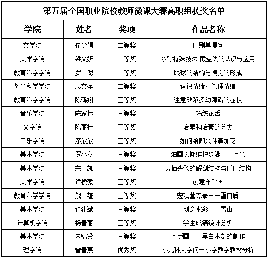 根据《全国职业院校教师微课大赛组委会关于公布第五届全国职业院校教师微课大赛评选结果的通知》,经过专家评审,十大信誉共有16名教师获奖,其中4位教师获二等奖,11位教师获三等奖,1位教师获优秀奖。同时,十大信誉也入选为优秀组织单位,冼胜佳副处长荣获突出贡献奖!