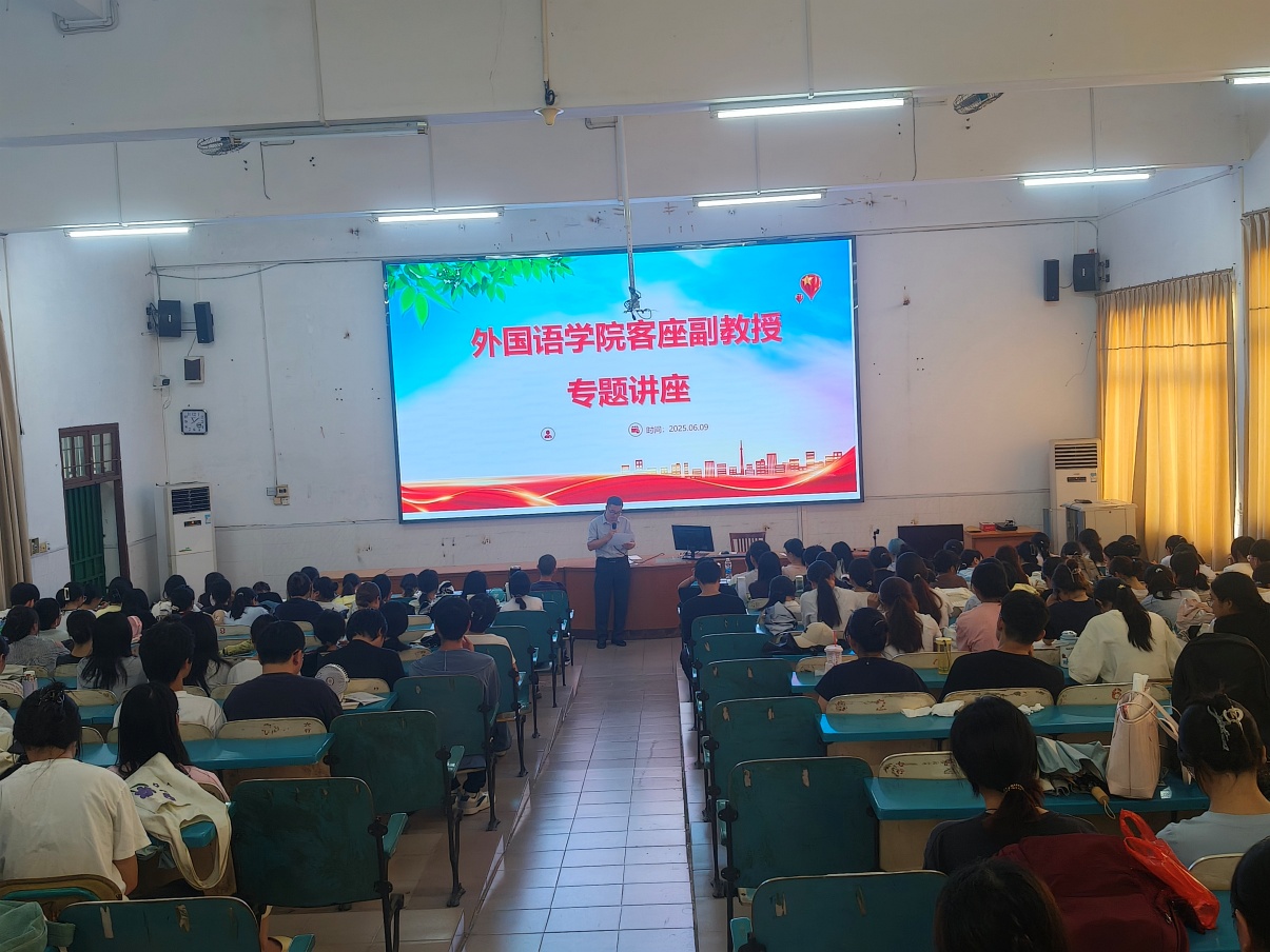 2025年6月9日,外国语学院邀请高州市文明路小学副校长、南粤优秀教师、优秀班主任李平和英语教研员李燕老师到高州校区开展了师范生专业成长专题讲座。学院党总支书记程昭玉,小学英语教育教研室老师和323级、324级小学英语教育专业的同学参加讲座。