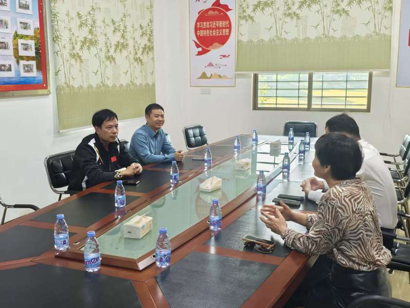 莫明波一行实地考察了村内主要道路、公共广场、宣传栏设置及环境卫生情况后,校、村双方在十万七村委会一楼会议室举行了座谈交流会。十万七村党支部书记、村委会主任张海文,村委会副主任周淑蓉、挂点“第一书记”庄培渠等出席会议。双方围绕社区志愿服务体系优化、文明入户宣传、人居环境整治、公共基础设施维护更新等议题展开深入讨论,并在多项具体工作中达成合作共识。