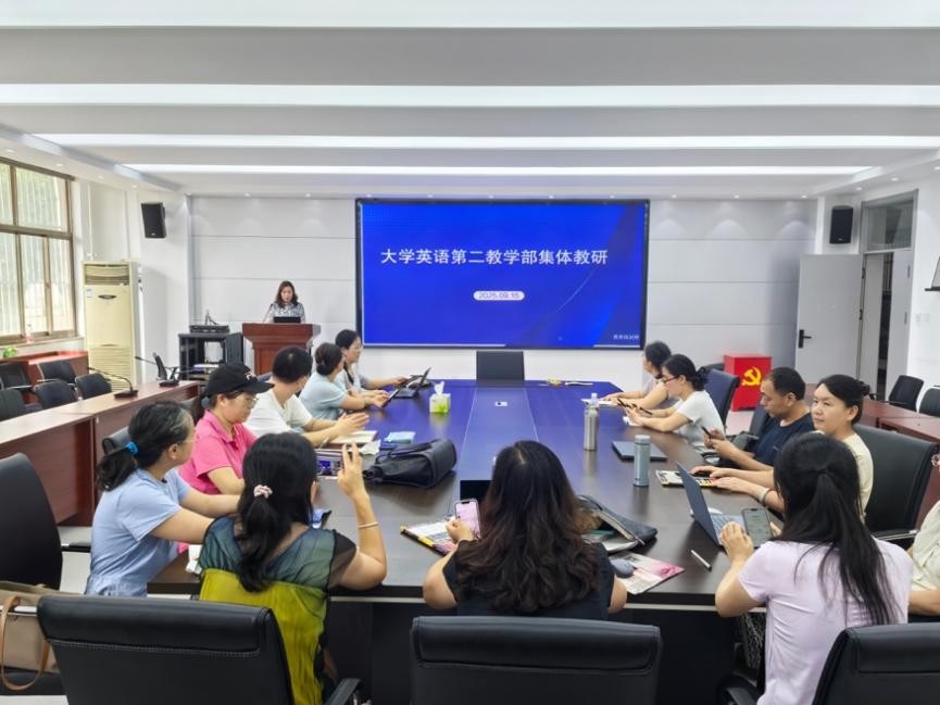 2025年9月15日,beat365唯一官方网站大学英语第二教学部在文经楼C220召开集体教研活动,活动由教学部主任聂庆娟主持,教学部全体教师参加。活动以 “大学英语智慧课程建设与实践” 为主题,聚焦如何利用AI赋能大学英语教学,代表教师分享在课程教学资源建设、课堂教学活动设计、教学评价中融入AI的教学实践,为进一步深化大学英语教学改革、提升教学质量奠定基础。