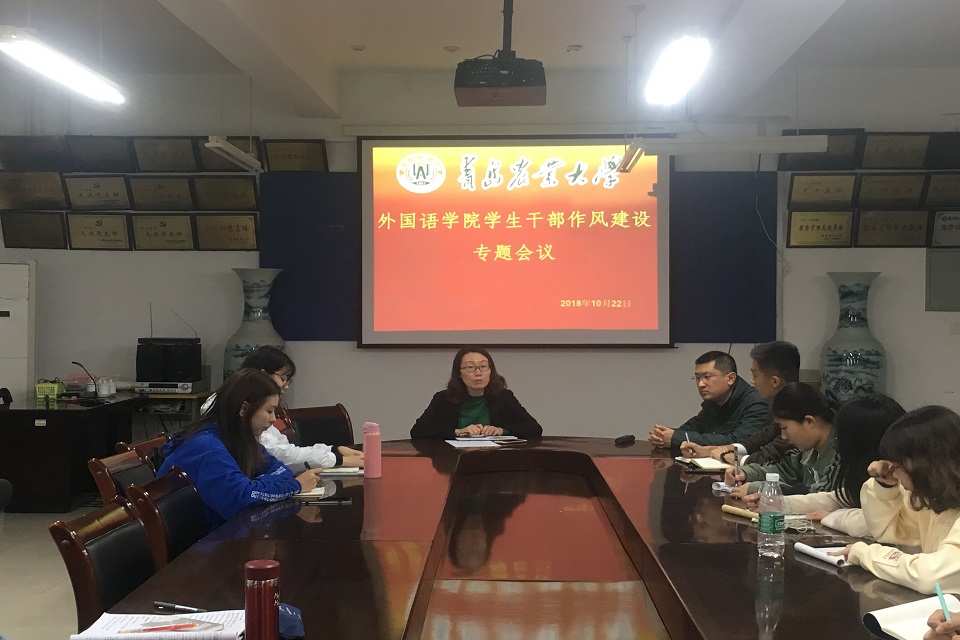 10月22日,beat365唯一官方网站在文经楼会议室召开了学生干部作风建设专题会议。会议由团委书记嵇安奕主持,院学生会主席团成员及全体部长参加。