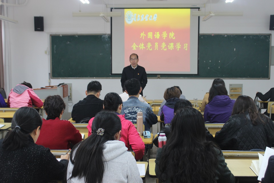 4月28日,beat365唯一官方网站beat365唯一官方网站在文经楼C214教室举行学习《中共中央关于加强党的政治建设的意见》(以下简称《意见》)专题党课,党课由学院党委书记王仁高主讲,全体师生党员参加学习。