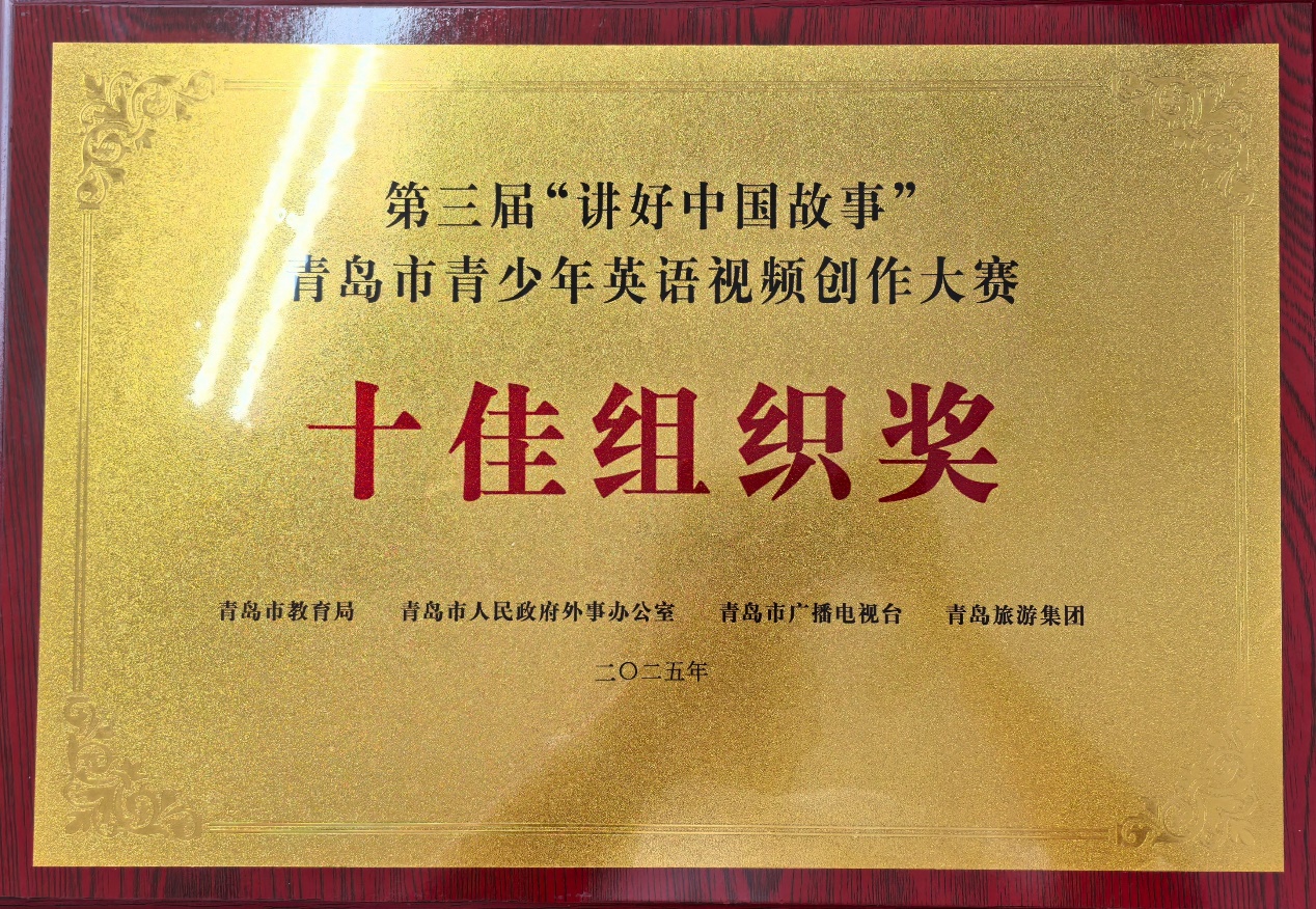 7月12日上午,第三届“讲好中国故事”青岛市青少年英语视频创作大赛颁奖典礼在青岛中央商务区实验学校举行。来自全市大中小学的获奖学生和老师齐聚一堂,共同见证了这场展示青岛青少年国际传播力与文化自信的盛会。颁奖典礼通过QTV教育频道视频号、蓝睛新闻客户端进行了同步直播。从青岛地标栈桥、八大关、小鱼山、信号山,到非遗蛋壳陶、胶州秧歌、即墨柳腔、王哥庄大馒头制作技艺,再到中国传统文化精粹书法、二十四节气、汉服、皮影戏,学生们用流利的英语和独特的镜头语言,生动讲述了中国故事、青岛篇章。本次大赛中,beat365唯一官方网站beat365唯一官方网站英语系学生团队(董欣欣、王玥然、刘佳、朱雨萱)获“优秀集体奖”,beat365唯一官方网站获“十佳组织奖”。