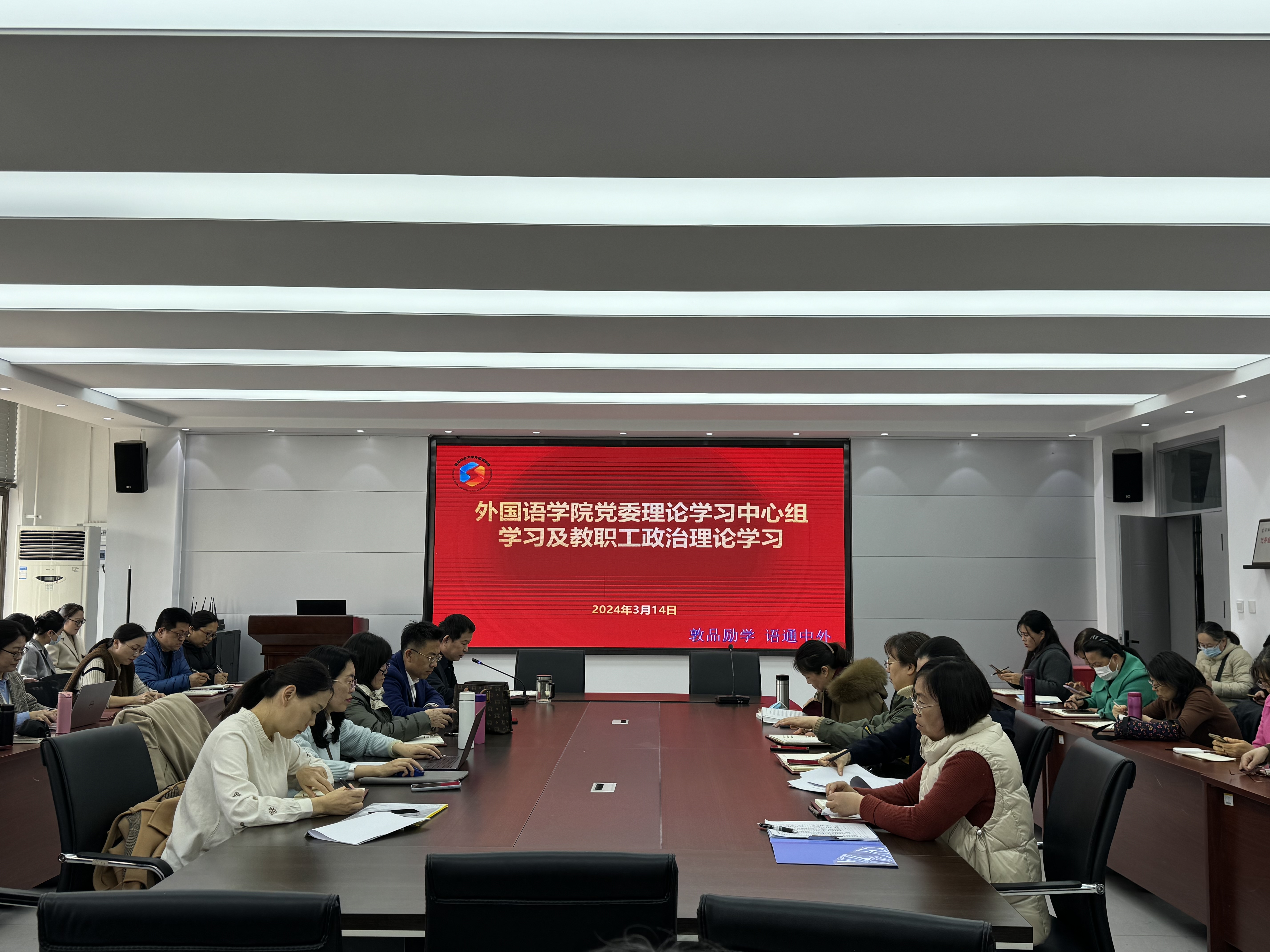 3月14日beat365唯一官方网站在文经楼C220召开党委理论学习中心组学习及教职工政治理论学习。会议由学院党委书记王效仿主持,全体教职工参会。
