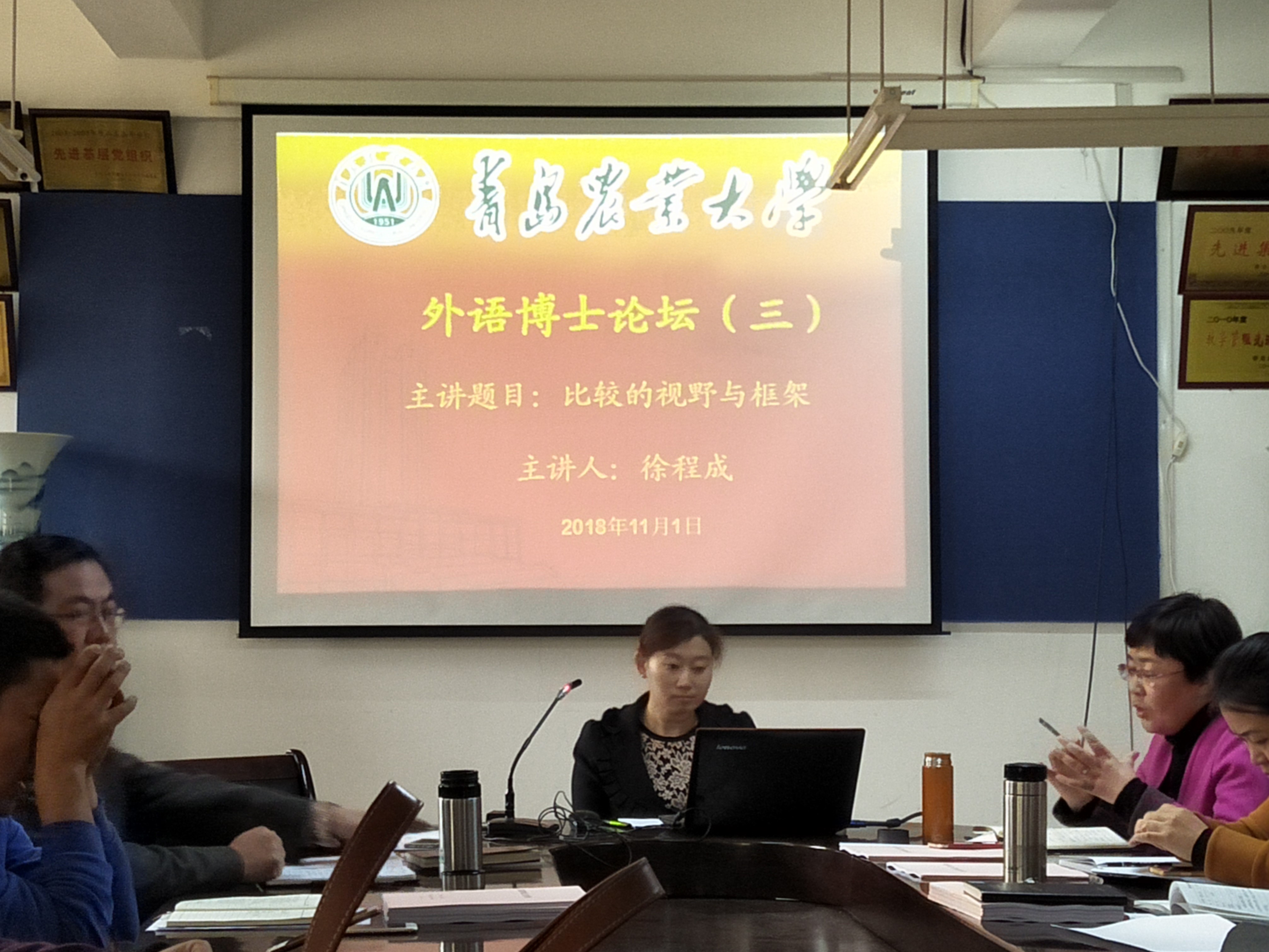 11月1日,beat365唯一官方网站“首届外语博士论坛第三讲”于文经楼会议室顺利举行。此次博士论坛由毕业于东北师范大学的日语教研室徐程成博士主讲,学院全体教职工参加,学院领导纪卫宁主持论坛。