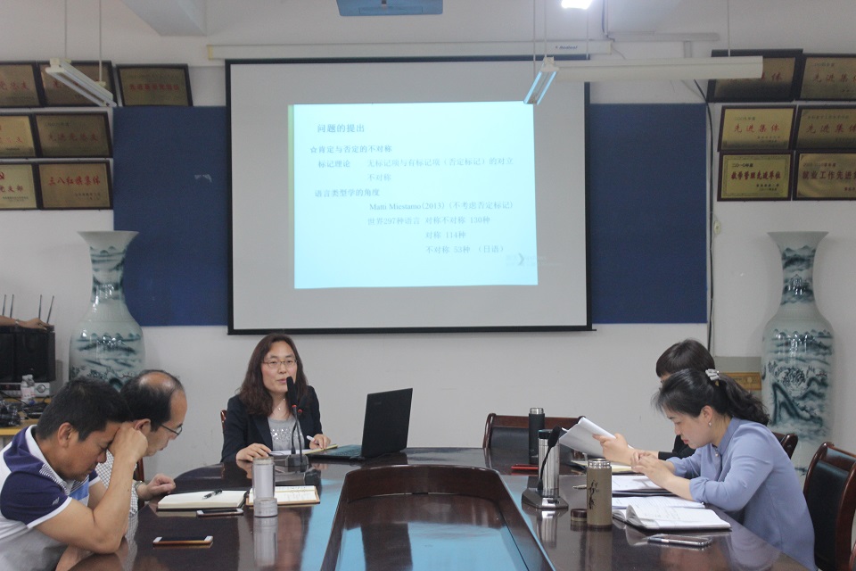 5月30日,beat365唯一官方网站beat365唯一官方网站于文经楼会议室开展外语学术论坛第四讲。此次学术论坛由仇虹博士主讲,主讲题目为《现代日语肯定与否定的不对称研究》,学院全体领导、教职工与会,副院长高秀雪主持论坛。