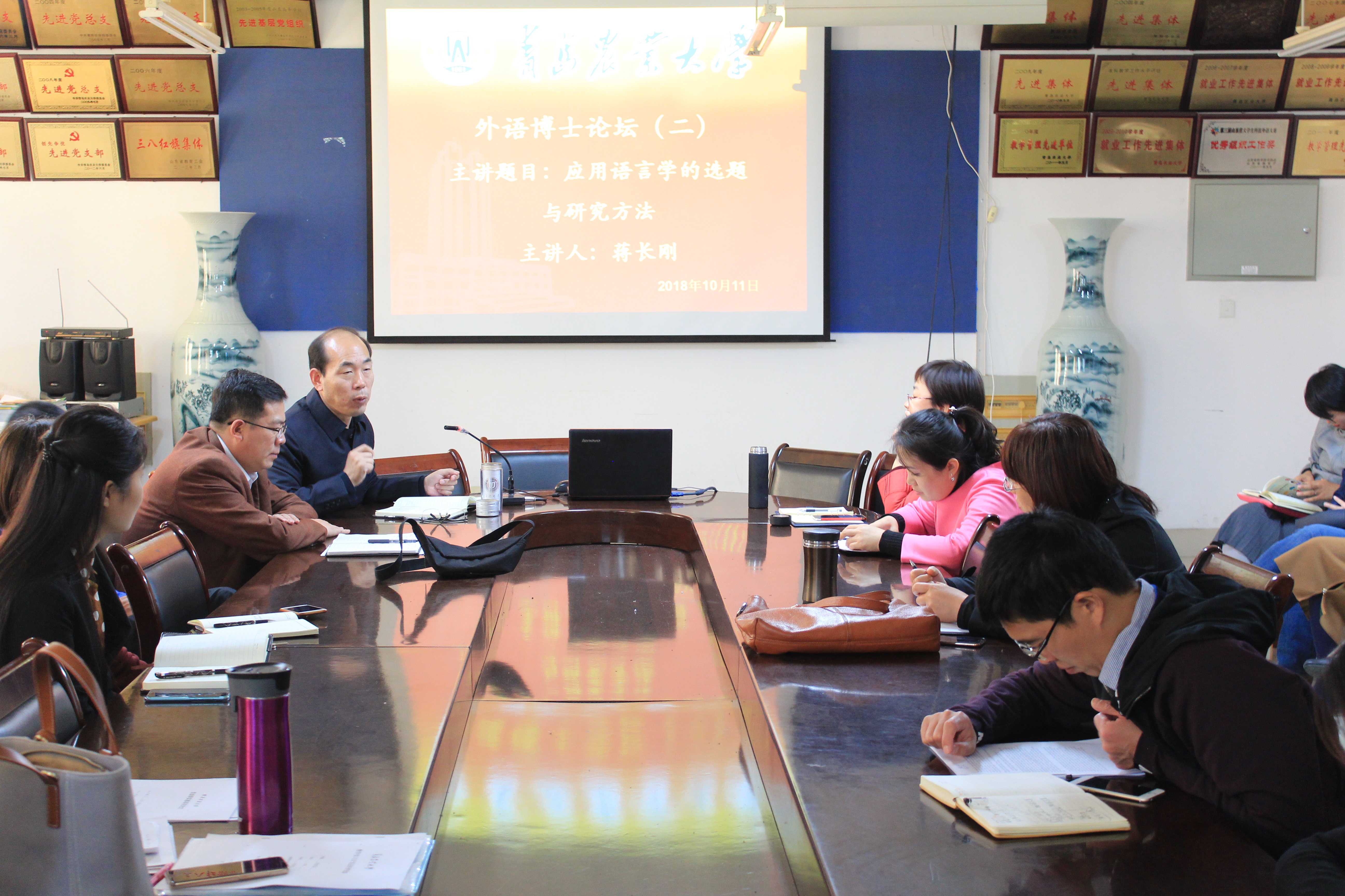 10月11日,beat365唯一官方网站beat365唯一官方网站“首届外语博士论坛第二讲”于文经楼会议室顺利举行。此次博士论坛由同济大学毕业的蒋长刚博士主讲,学院全体教职工出席,学院领导纪卫宁主持论坛。