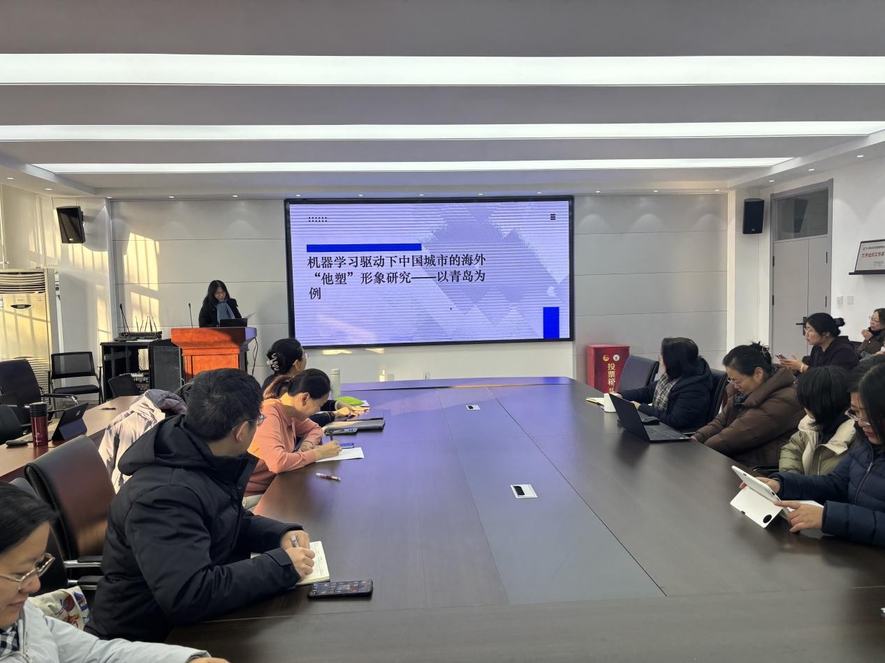 在学术报告中,三位主讲人分别就《机器学习驱动下中国城市的海外“他塑”形象研究》《“Crotty社会研究框架”下博士学位论文的研究设计》《知识翻译学的“真、善、美”》进行了深入讲解,分享了最新研究成果,为学院教学科研工作的创新发展和拓展提供了新的思路与启示。讲座过程中,现场教师积极参与互动交流环节,围绕研究方法的创新应用、跨学科理论的融合路径等问题展开热烈讨论。三位主讲人结合自身研究经验,回应了老师们关切的具体问题,现场气氛活跃而深入。此次讲座不仅拓宽了学院教师的学术视野,也促进了学院内部跨领域对话与合作。