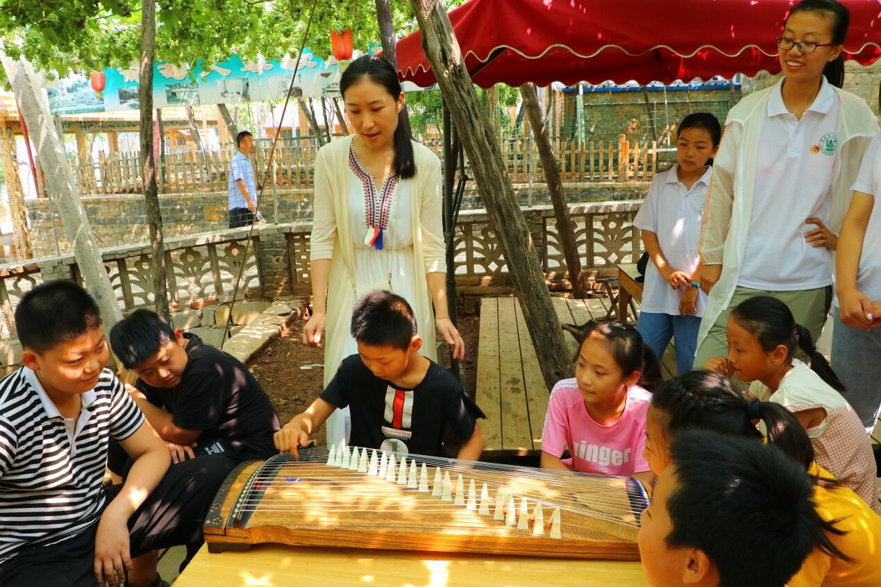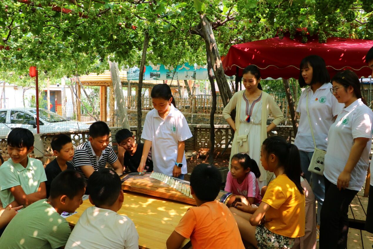 7月15日下午,小队员小许老师,用从三百多公里的青岛背来的小型古筝,以演奏一首轻快的儿童曲目为切入点,带领留守儿童们轮流体验古筝弹奏。一开始,小朋友们都有些害羞,在队员们的鼓励下,孩子们积极尝试演奏。当他们弹奏出了正确的曲调,小脸蛋上洋溢着自豪的笑容。