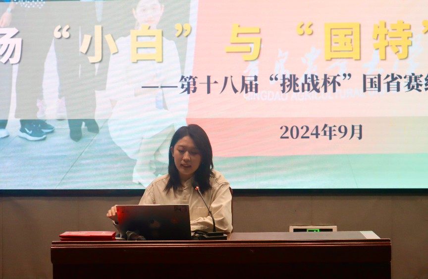 随后,化学与药学院学生会执行主席郑稳超分享《大学生创新创业计划训练项目申报》心得。他从大学生创新创业计划训练项目的总体要求、基本情况、立项依据、经费预算四个方面进行了介绍,聚焦于项目策划书的撰写技巧并为同学们提供了多种制作项目PPT的方法、思路和许多切实可行的撰写建议。