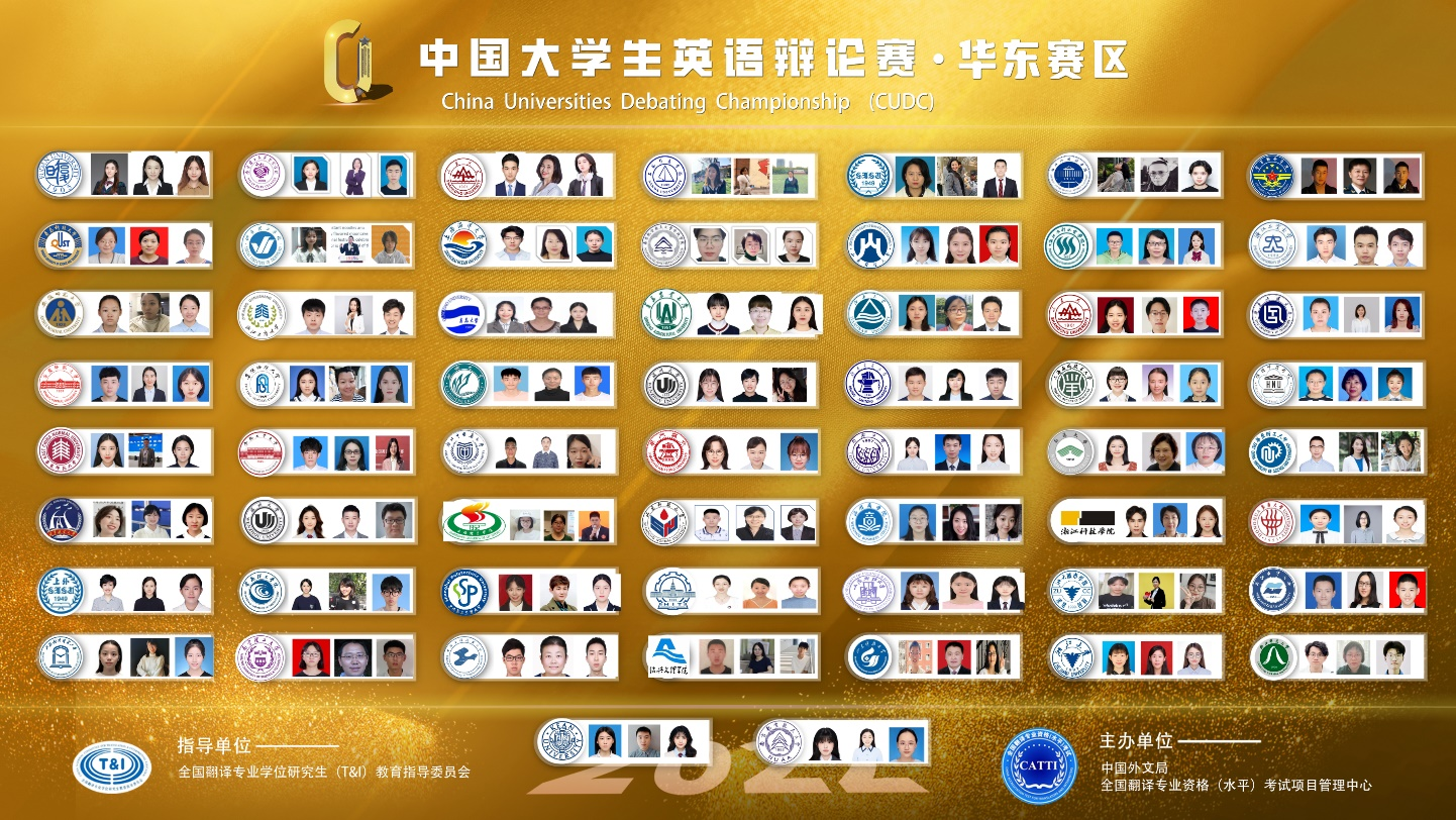CUDC中国大学生英语辩论赛由中国外文局全国翻译专业资格(水平)考试项目管理中心主办。今年的华东赛区比赛覆盖了上海市、浙江省、江苏省、安徽省和山东省。华东区比赛共有60支队伍参加,包括复旦大学、上海外国语大学、上海交通大学、浙江大学、山东大学、华东师范大学、同济大学、华东理工大学、上海财经大学、青岛大学等高校。