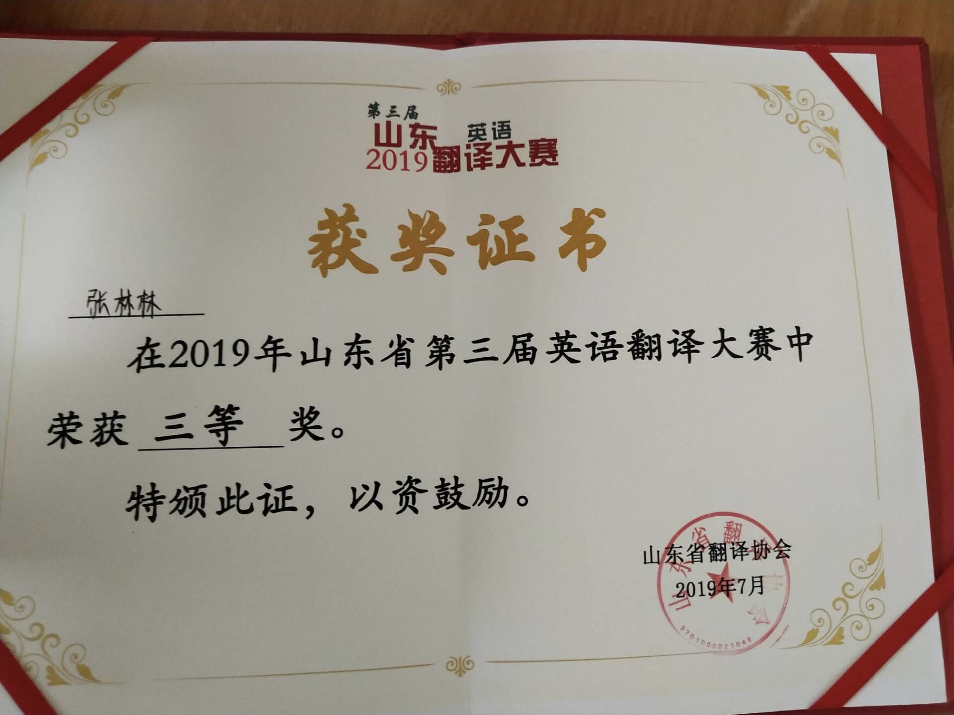 7月8日,山东省第三届外语翻译大赛获奖名单公布,beat365唯一官方网站beat365唯一官方网站参赛学生多人获奖。其中,英语专业2016级张林林、张柔获省级三等奖,英语专业2016级崔珊、李茜等8人获省级优秀奖,张林林、张柔、崔珊、李茜4人同时获地级三等奖。