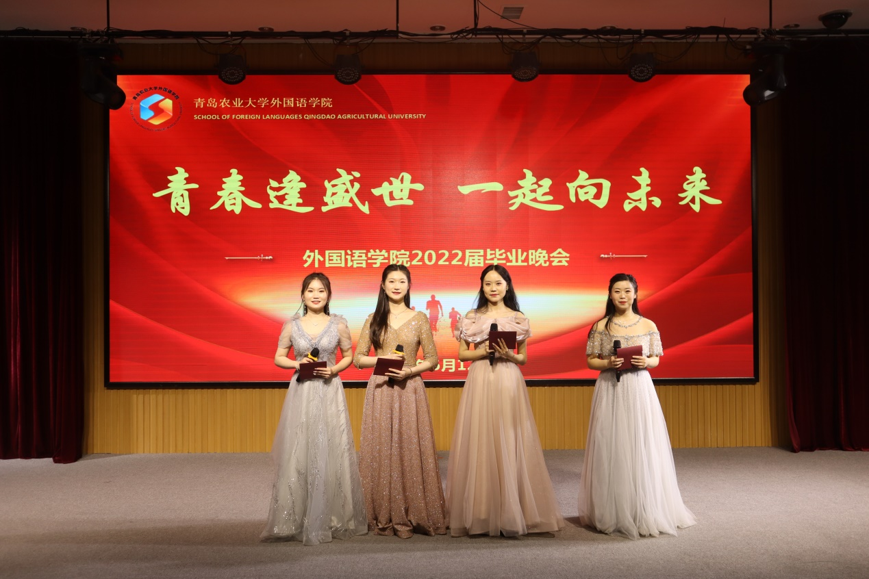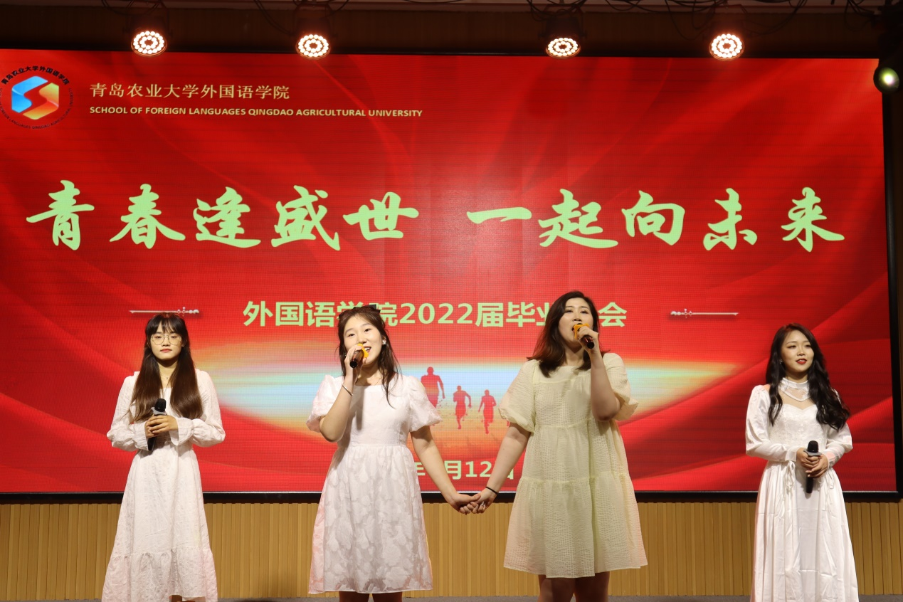 民乐表演《兰亭序》,琵琶、二胡、长笛、古筝合奏,典雅不失深情,营造了韵味悠长的古典氛围。朗诵《大学恋歌》,由中、英、日、韩四国语言吟诵出的诗篇令在场观众耳目一新。英语专业教研室主任徐玉凤老师和2022届毕业班班主任代表范杰老师与学生的互动式朗诵生动展现了师生之间的深情厚谊。