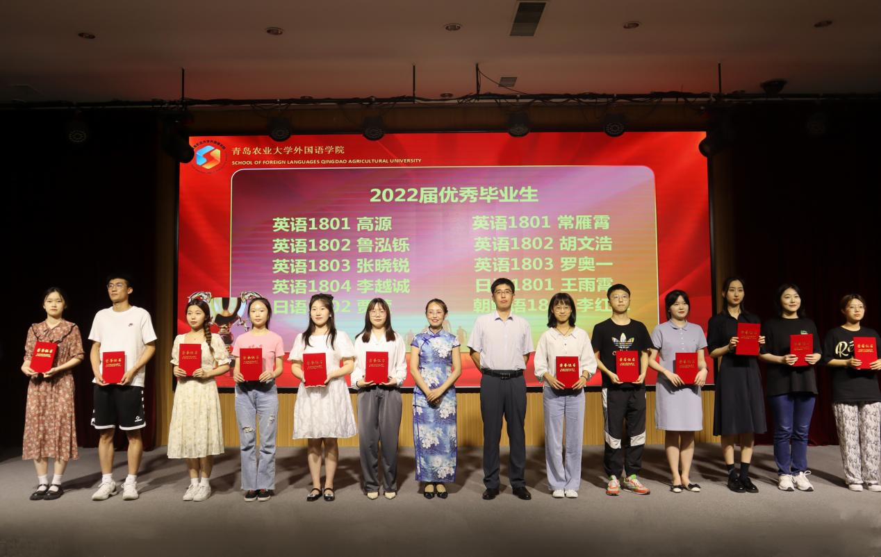 在优秀毕业生颁奖仪式上,毕业班班主任代表楚立峰、范杰两位老师为优秀毕业生代表颁奖,并分享了班级高就业率和高考研率等工作经验。同时,两位老师寄语毕业生继续发扬“厚德、博学、笃行、致远”的校训和“敦品励学、语通中外”的院训,在各自领域大展宏图。