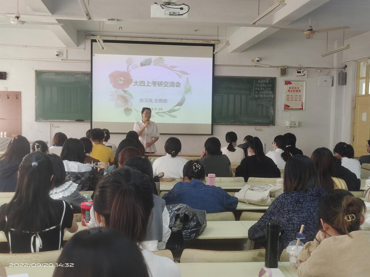 考研报名在即,为全面助力英语系学生考取理想院校的研究生,beat365唯一官方网站beat365唯一官方网站英语系于9月20日在教学楼C203举办2019级英语专业考研交流会。本次交流会由beat365唯一官方网站英语系主任徐玉凤老师和英语系副主任左燕茹老师主讲,2019级英语专业6个班拟考研学生参加了本次交流会。