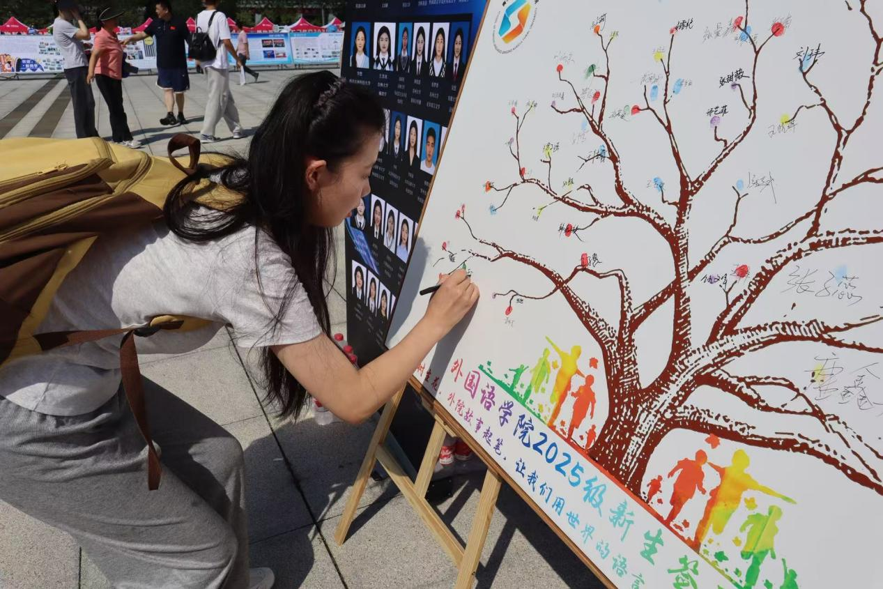 礼蕴初心,筑梦启航。一份份新生大礼被送入2025级新生的手中。大礼包内容包含印有外国语logo的文件夹、学院宣传册、新生入学指南等,让新生收获学院热情和温暖的同时,感受语言魅力,赋予新生专属于外院的“logo”。此外,还特别制作了2025年新生签到指纹树,供新生打卡创造独属于beat365唯一官方网站新生的独特报道体验与记忆。