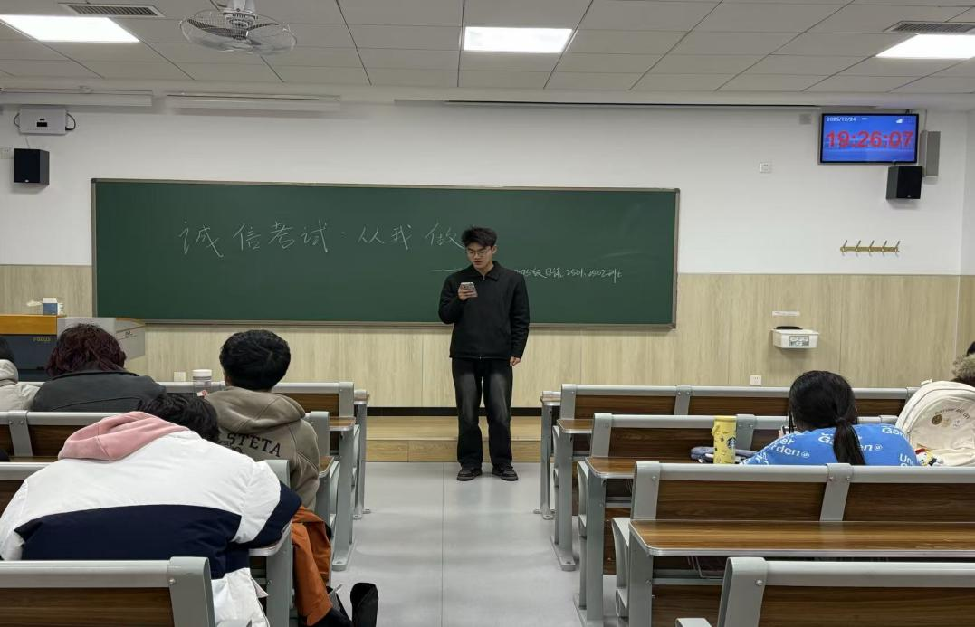 12月22日,各班级召开“诚信考试,从我做起”主题班会,组织学习校规校纪、观看诚信教育视频,结合违纪案例剖析与校规解读问答,引导学生树立“以诚信立身,以诚信应考”的价值观念。