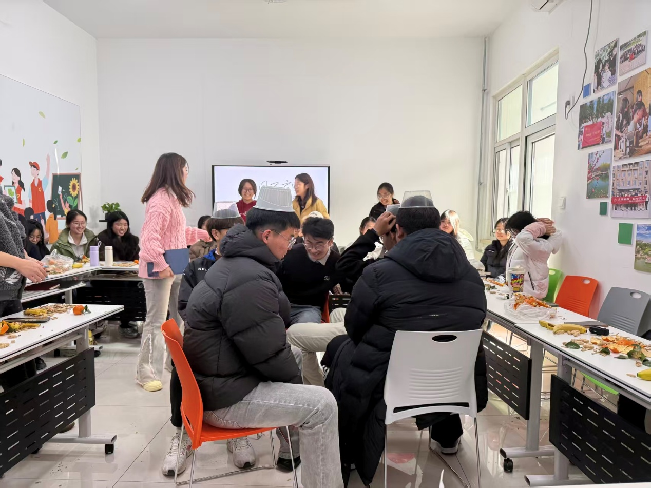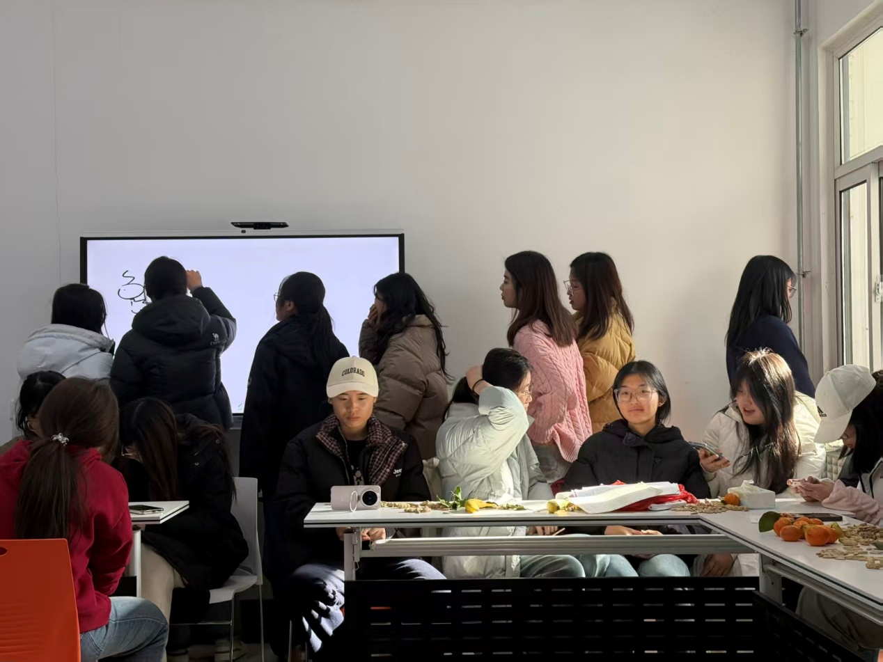 核心游戏环节趣味十足,全员热情参与,成为班会的一大亮点。“过目不忘”考验快速记忆能力,参与者在15秒内记忆内容并精准复述,展现短时记忆;“你画我猜”“传声筒”聚焦团队协作,各组成员默契配合,在限时传递与互动中活跃氛围,笑声不断;“真心话大冒险简化版”让同学们放松身心,在轻松问答与趣味动作中拉近距离。游戏结束后,获胜小组收获专属奖品,未获胜的小组也通过唱歌等才艺表演完成趣味惩罚,现场掌声与欢呼声此起彼伏。欢乐的游戏环节过后,全班同学集体合唱《第一天》。随后公布游戏获胜组并发放奖品,主持人张莹新以“聚是一团火,散是满天星”寄语全体同学。班主任左燕茹老师发表寄语,鼓励同学们互帮互助、融入集体,在大学时光里稳步成长。最后,全体师生合影留念,为此次团建活动画上圆满句号。